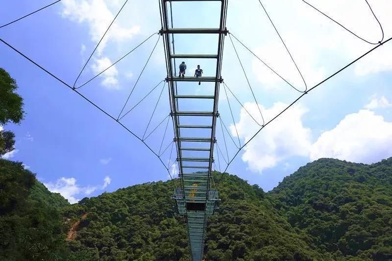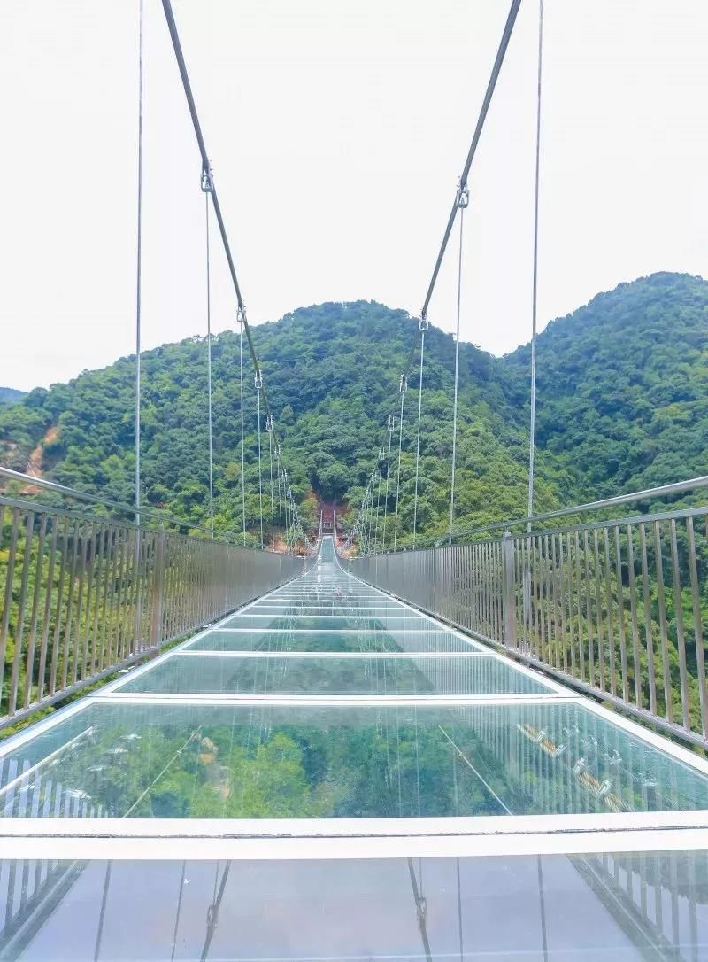 古龍峽玻璃橋全長329米,平均寬度3.8米,最寬處6.8米,橋上2個港灣式透明觀景凸臺位于最寬處,和UFO玻璃平臺遙相呼應(yīng)。作為世界最寬的觀瀑玻璃橋,在國內(nèi)第一家采用超大面積玻璃,橋面可以容納5人并行,也可從容地拍下全身照,面積達40平方米港灣式觀景凸臺設(shè)置了5D聲光電特效裝置,感應(yīng)到游客經(jīng)過時,會出現(xiàn)“山崩地裂”“玻璃破碎”等奇幻效果。經(jīng)浙江大學(xué)土木工程系測試,玻璃橋靜態(tài)負(fù)載可超過700人。