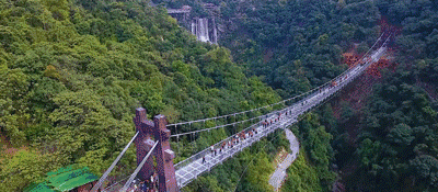 古龍峽觀瀑玻璃橋,位于景區(qū)萬丈崖瀑布群核心景點內(nèi),全長339.2米,平均寬度3.8米,最大寬度6.8米,創(chuàng)CWRA“世界上最寬的觀瀑玻璃吊橋”世界紀(jì)錄。