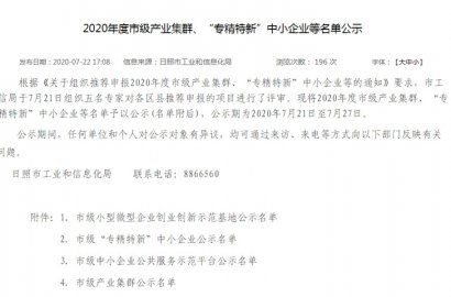 根據(jù)《關(guān)于組織推薦申報(bào)2020年度市級(jí)產(chǎn)業(yè)集群、“專精特新”中小企業(yè)等的通知》要求,市工信局組織專家對(duì)各區(qū)縣推薦申報(bào)的項(xiàng)目進(jìn)行了評(píng)審。我公司通過(guò)2020年度市級(jí)“專精特新”中小企業(yè)評(píng)審。